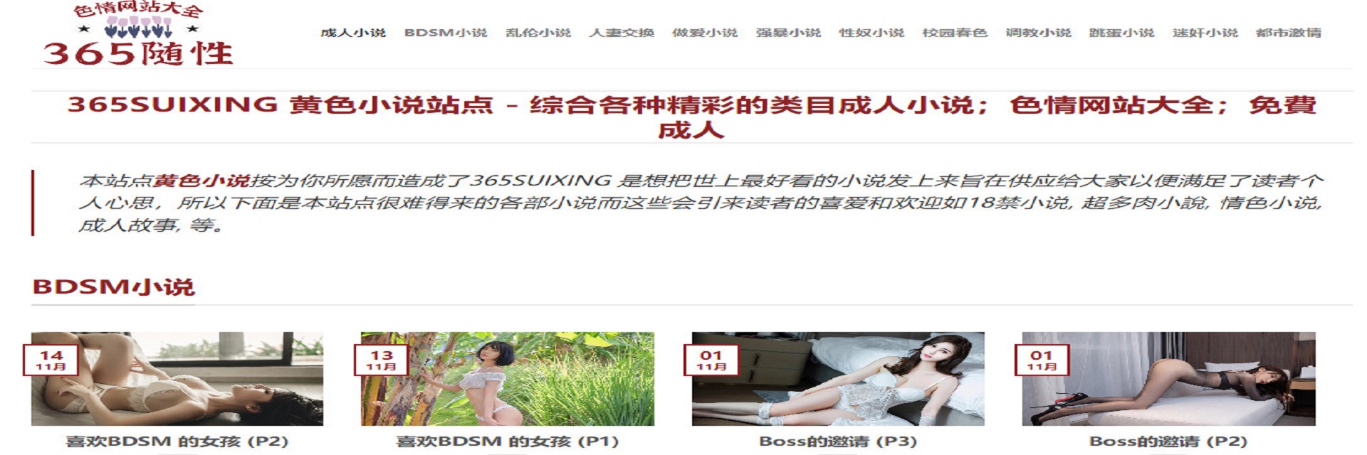 本站点黄色小说按为你所愿而造成了365SUIXING 是想把世上最好看的小说发上来旨在供应给大家以便满足了读者个人心思,所以下面是本站点很难得来的各部小说而这些会引来读者的喜爱和欢迎如18禁小说, 超多肉小說, 情色小说, 成人故事, 等。